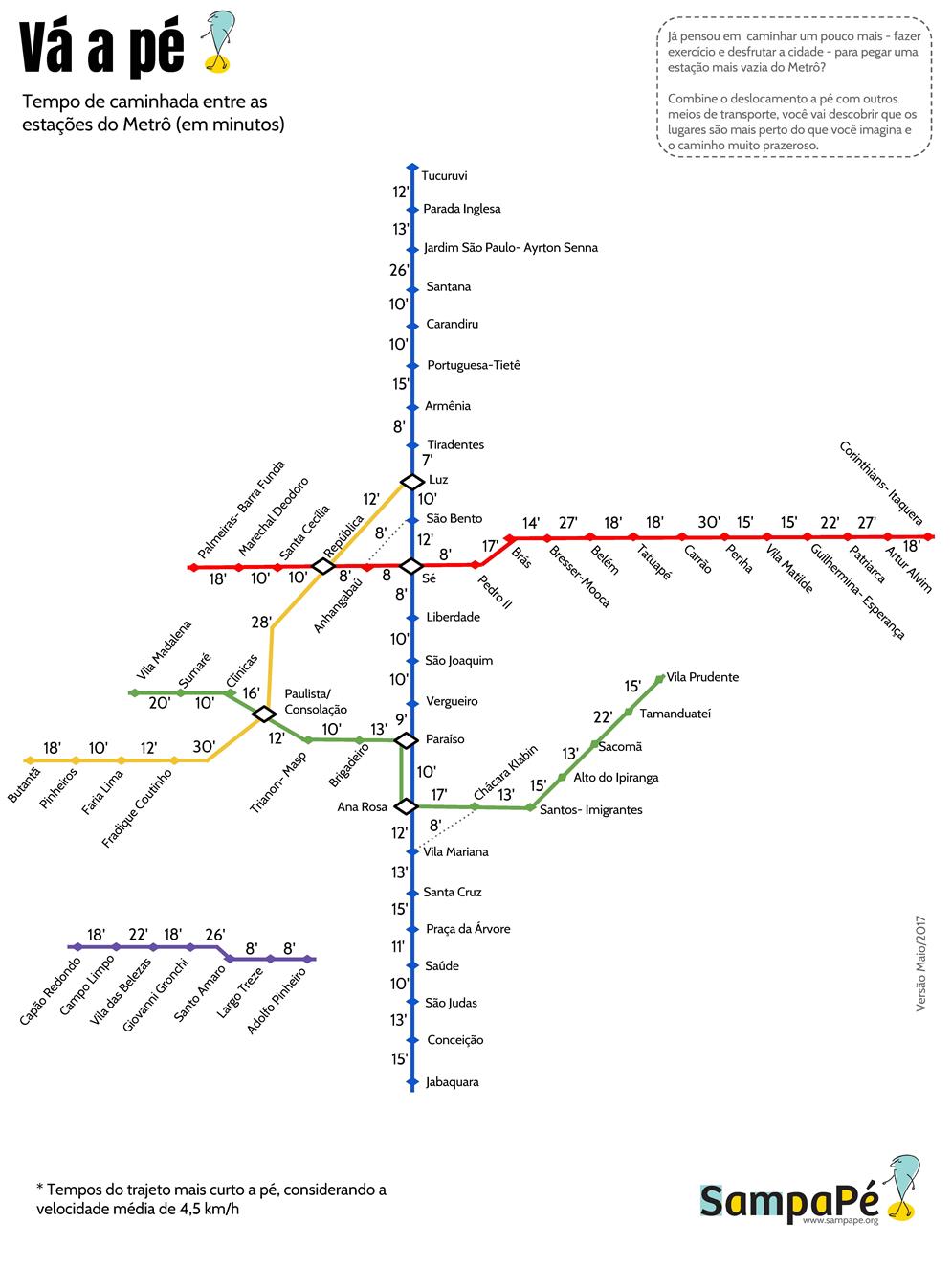 "Vá a pé" dá a distância entre estações do Metrô