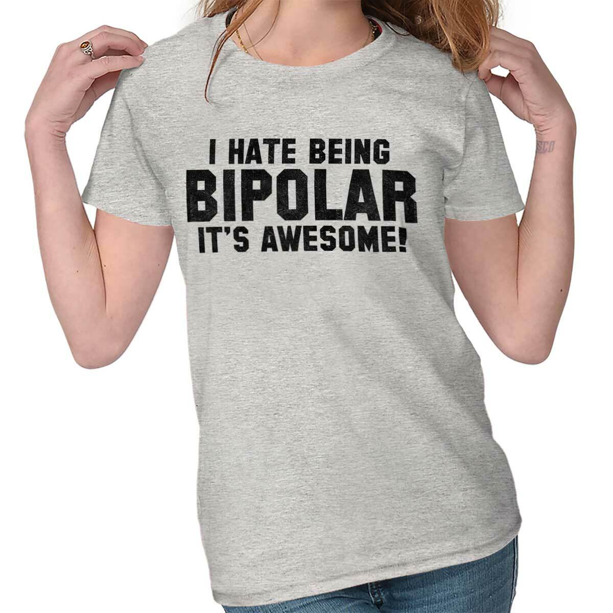 I Hate Being Bipolar Its Awesome Sarcastic Womens Short Sleeve Ladies T Shirt eBay