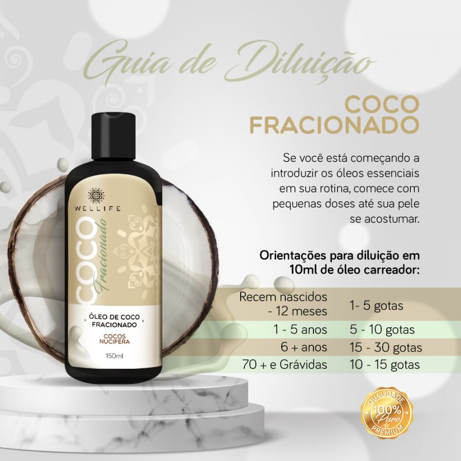 Óleo de Coco Fracionado Carreador para Óleos Essenciais 100 vegetal Dose Exata Farmácia de