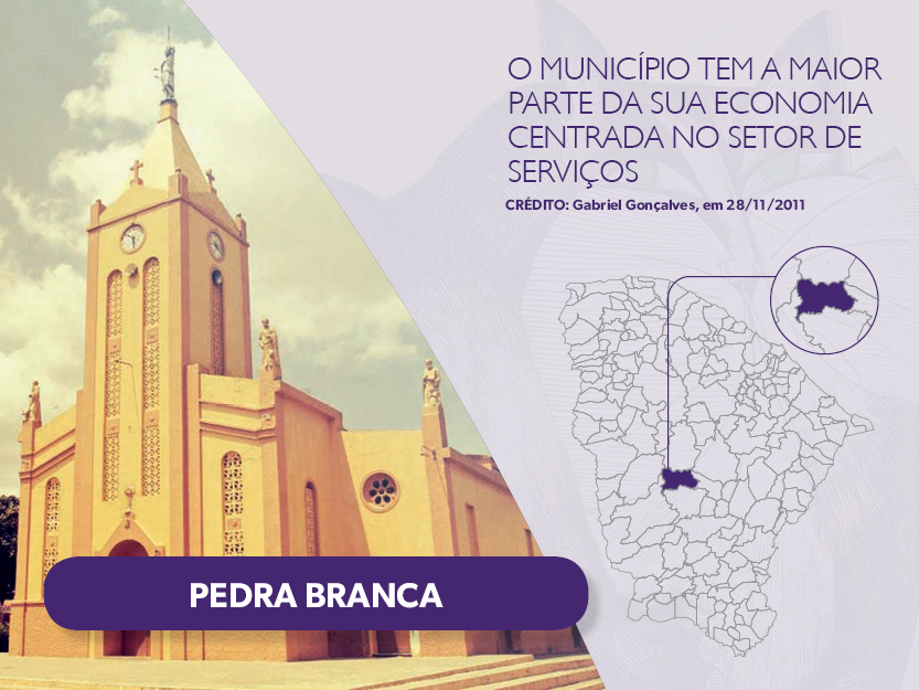 Pedra Branca, que deu nome à cidade.. EEEP Antônio Rodrigues de Oliveira, a qual se destaca pelo bom desempenho de alunos em olimpíadas estaduais [12], nacionais [13] e internacionais [14]. Demografia. Dados do Censo de. O município de Pedra Branca tem a maior parte da sua economia centrada no setor de serviços. Embora a taxa de.
