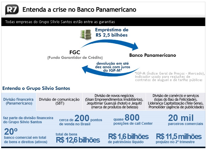 Entenda o caso Banco Panamericano. Os principais sites, jornais e telejornais do país inundaram o noticiário abordando o caso do Banco Panamericano, controlado por Sílvio Santos. Folha, UOL e G1 são apenas alguns exemplos. O banco apresentou algumas inconsistências em seu balanço, que encobriram por algum tempo um rombo próximo a R$ 2,5.