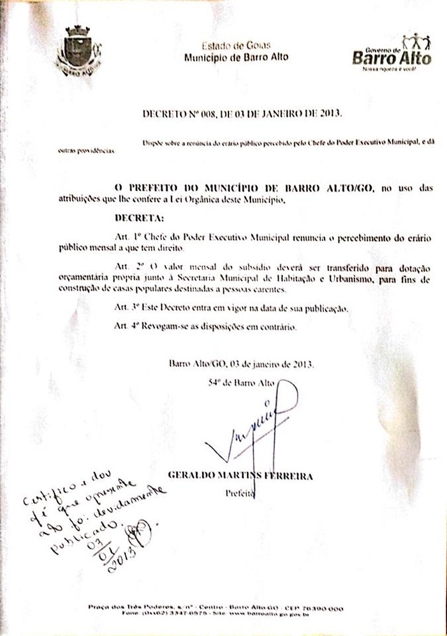 PREFEITO DE BARRO ALTO/GO ABRE MÃO DO SALÁRIO PARA CONSTRUÇÃO DE CASAS POPULARES Radar do Vale