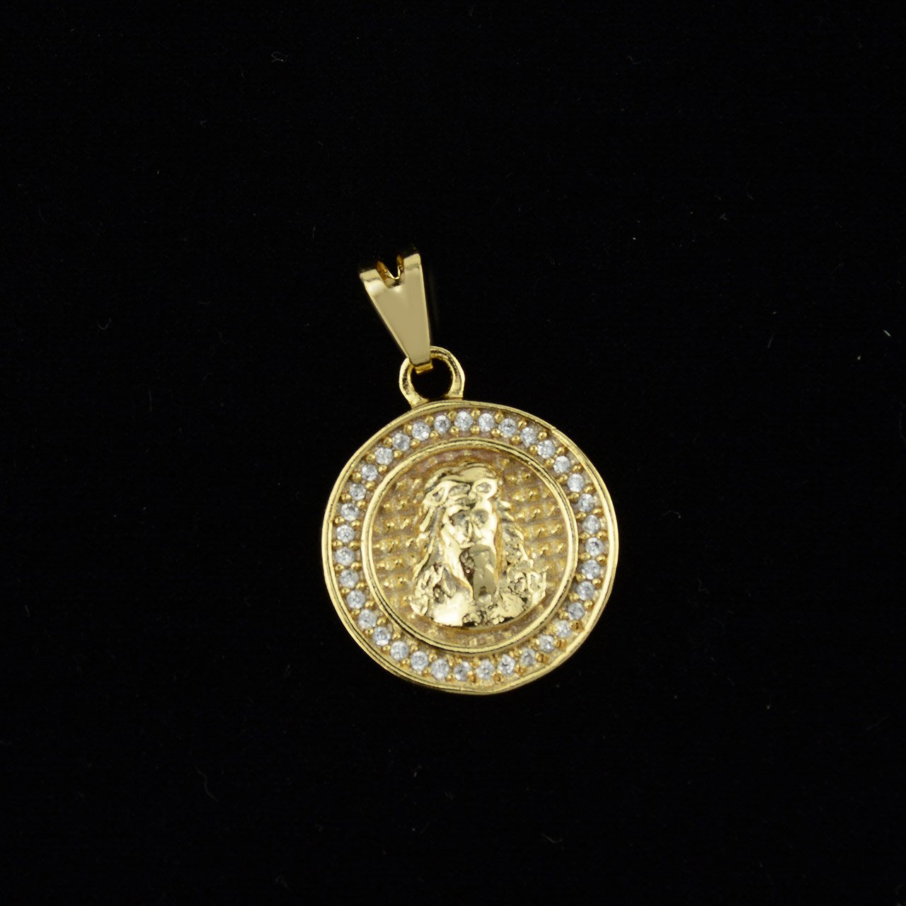 Pingente Moeda Jesus Cristo em Relevo com Bordas Cravejadas D'Pauline Semijoias